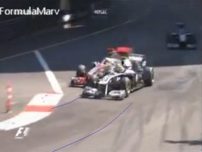 Maldonado nem tette semmilyen irányváltást. Egyszerűen az ideális íven ráfordult a kanyarra. Kicsit szűkebben mint szokott, mert egyértelművé akarta tenni Hamilton előtt, hogy oda nem fér be.