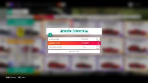 -az aukciós házban, kiválasztottam a Ferrari-t, a többi szűrőt alapon hagytam, aztán szépen végig görgettem a kínálatot, miután a végére értem és vissza akartam térni a játékba, akkor kifagyott, alt+f4-el kellett kilépnem