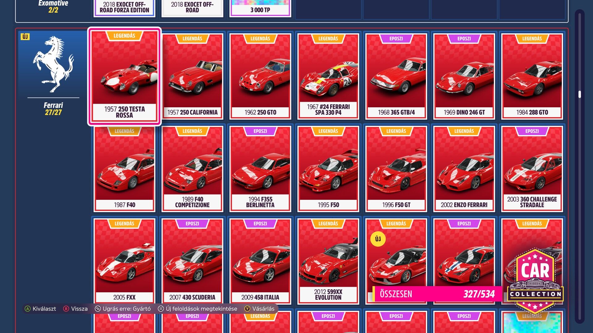 Nekem most olyan ~550 kocsim van, ebből ~100 csak Willys Jeep, mert olcsó, és 5 pontért kapok Super Pörgetést, tehát ebből még venni fogok jó sokat, azóta beakadt még egy Elemento FE, azt elpasszoltam közel 6 milláért, egész jól haladok, lassan megvan minden verda az alapjátékból.