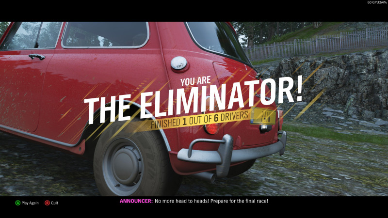 FH5 amúgy fullos, ott szerencsére csak az accolade-ek szivatósak, de hiányzik is jópár az eliminatorból. Azon kívül csak tuningos, meg festős accolade-ek nincsenek meg, de az nem is lesz szerintem (1000 download, use, meg like, na persze)… Minden más full kész.