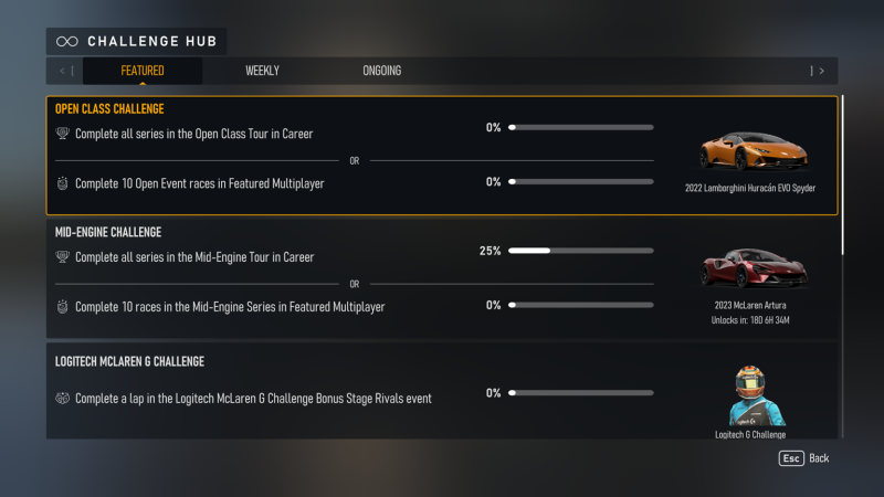 A Motorsportban megjelentek a heti/havi kihívások. Kreditet lehet a teljesítésükért kapni.