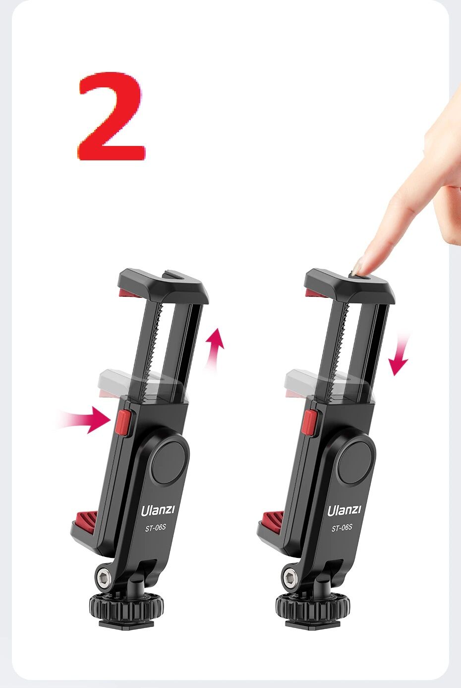Fogasléces megfogó. Ha benyomják a gombot az oldalán, akkor szét lehet húzni. Utána a telefont a megfogó karmok közé lehet tenni. Össze kell tolni amíg mindkét vége a telefonnak szorul.