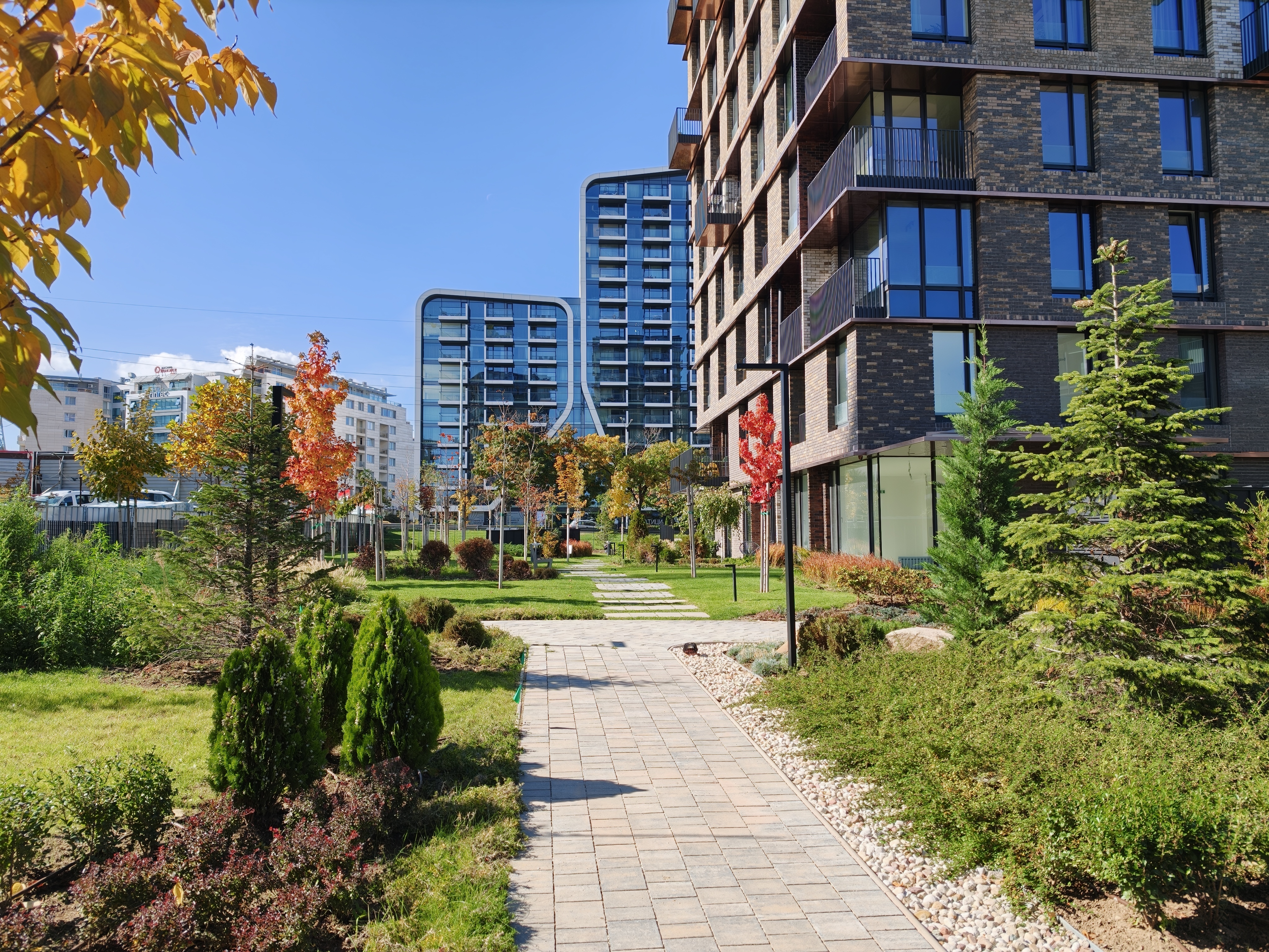 A 3.5x zoom kameránál bőven van baj, össze-vissza homályos-éles foltok rögtön az első képnél. A fák ágait kell nézni. A füvön és a térkövön is gyengék a részletek.