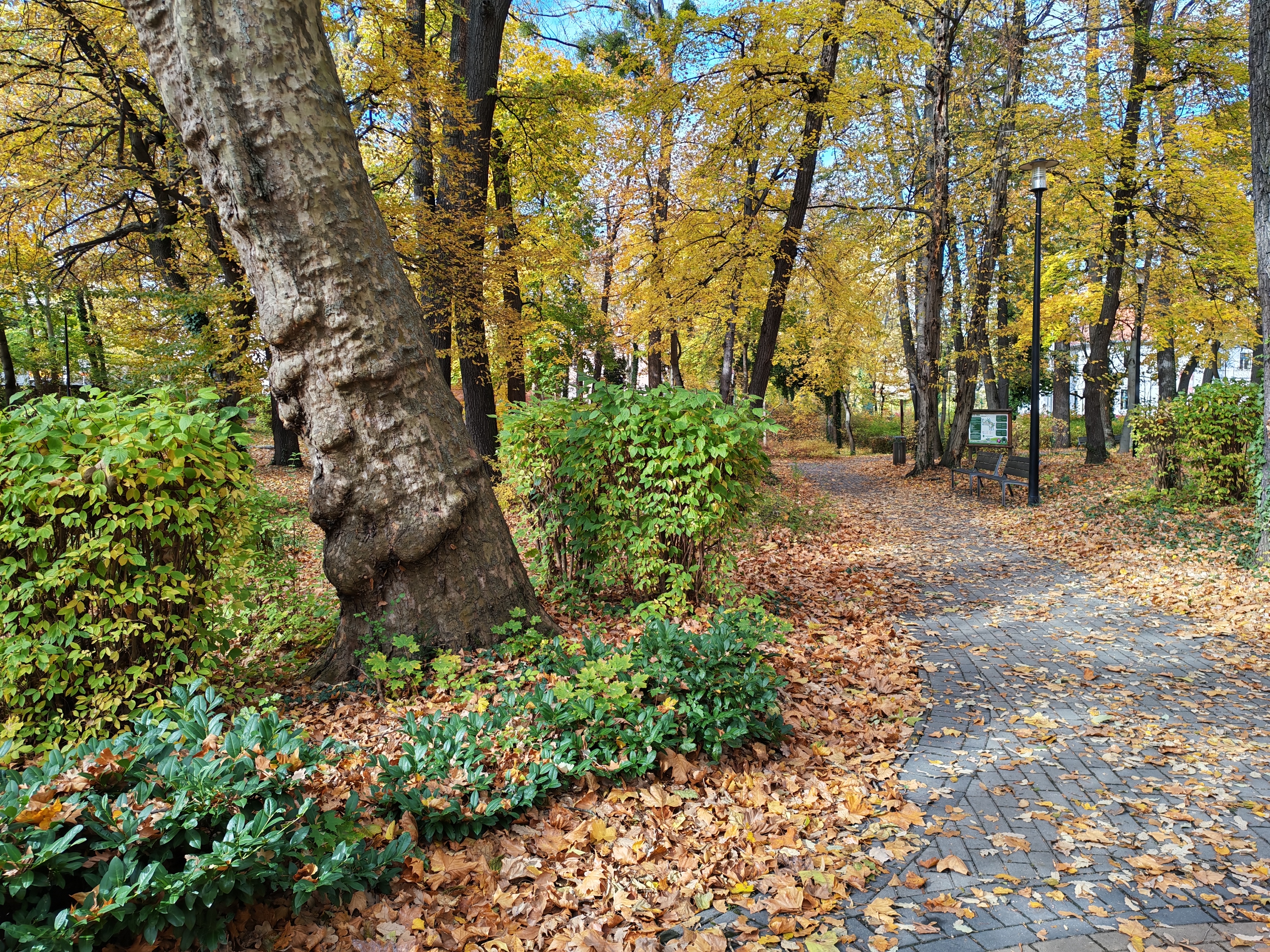 Az utolsó 3.5x kép ugyanez, ránézek és nem értem mi van, minden sárga levél mosott, de a közte lévő barnák élesebbek. A távolban a sárga részek ugyanígy mosottak foltokban, mintha nem létezne fókuszsík.Nekem furcsa a főkamera is, rögtön az első képnél mintha azt látnám, mint amit a zoom kameránál. Ugyanazon a fán, ugyanabban a távolságban vannak éles és homályos ágak-levelek.