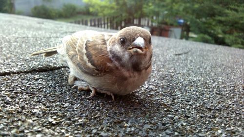 Ma reggel munkába indulás előtt álltam az ablak előtt, egyszercsak egy hatalmas koppanást és utána még egy kisebb koppanást hallottam. Kinéztem az ablakon, egy kis veréb volt a bűnös, fejjel nekicsapódott az ablaknak, aztán a hátára esve a tetőn maradt. Nem lett nagyobb baja, életben volt. Öcsém kimászott a tetőre, a lábára állította, de a madárka nem bírt elrepülni. Pár perc pihegés után erőre kapott és felszállt egy fára, onnan figyelt utána. Öcsém a tetőn csinált egy képet róla, de sajnos Snapchat kamerával, ami 1280x720 pixel felbontású, pedig egy LG 4X HD-ról van szó.