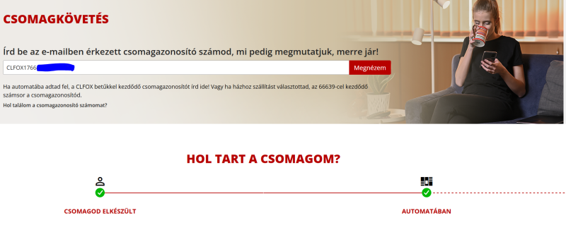 Azt írja a nyomonkövetés, hogy 26.-án az automatában lesz.