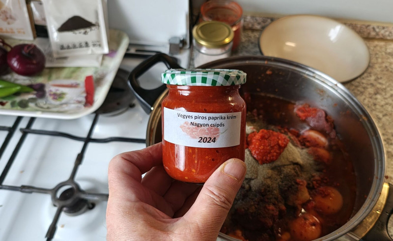 A másik felébe a fenti fűszereken felül ment bőven házi készítésű chilipaprika krém.