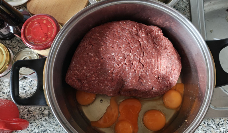 3,5 kg kétszer darált felsálat vettem (tudom, hogy sokan azt tartják, hogy a húst nem szabad darálni, hanem késsel kell apróra vágni, de 3,5 kg hús esetében ez szóba sem jöhetett).
