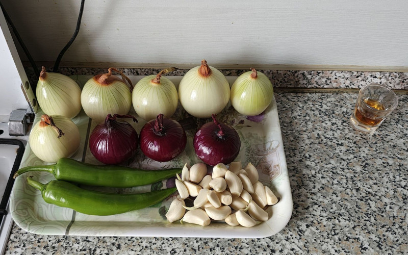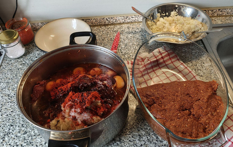 A hozzávalók a jó idő kivételével megvannak. Vettem 4 kg vegyes birkahúst (csontosabb és húsosabb részeket is), illetve 1,5 kg marhalábszárt a finnyásabb vendégek kedvéért.
