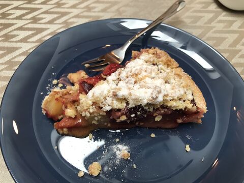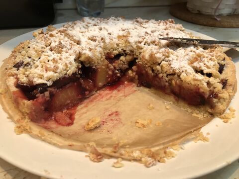 A szilvát magozzuk, negyedeljük, összekeverjük a többi hozzávalóval, majd a sütőből kivett tésztára tesszük és arra reszeljük a tészta kisebb felét reszelővel. Mehet vissza a 180 fokos sütőbe 30 percre. Ha a végén nem barnul meg szépen a reszelék, akkor 200 fok, légkeverésre kapcsolni és figyelni hogy csak a barna színig jusson el. Sütőből kivéve azonnal porcukorral meghintjük és 20-30 percig kibírjuk, míg kihűl kicsit és összeszilárdul.