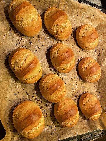 Na kész lett a maradék 357g kenyér tésztából az 5 db szendvics rudak. 20%-súly veszteség lett a végeredmény.
