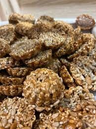 Tökmag, napraforgómag, szezámmag volt valami mázzal összefogva, talán tojásfehérje cukorral felverve.