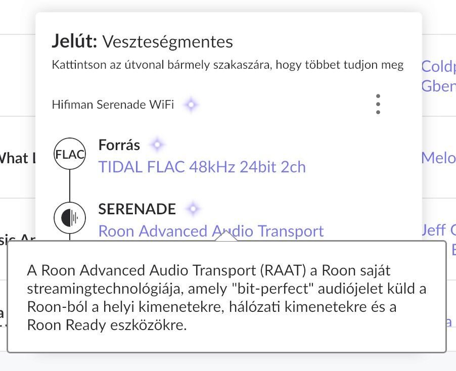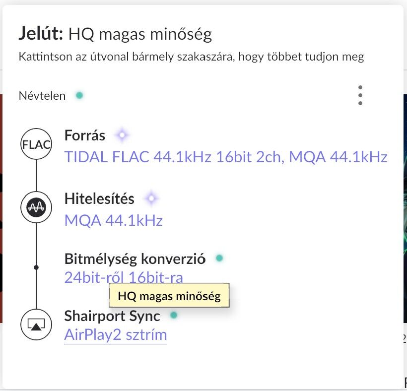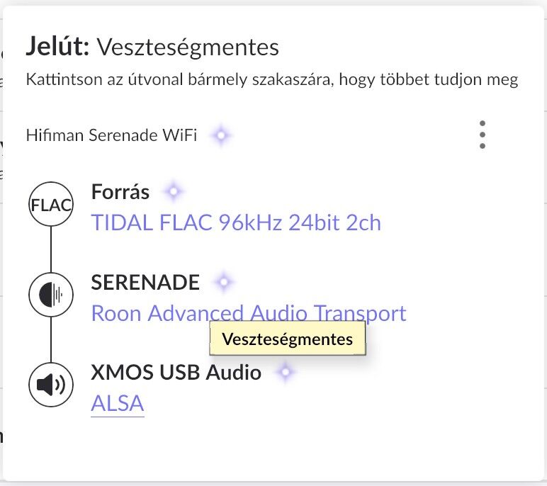 Wifin próbálod a streamert? A LAN is meg tudja változtatni a hangot.... Amit írsz, akkor már a Roon-nál megrottyan a hang, lehet nem is a streameren múlik. Nálad itt ha a piros bekarikázottra kattintasz lejátszás közben, mit mutat? [kép]