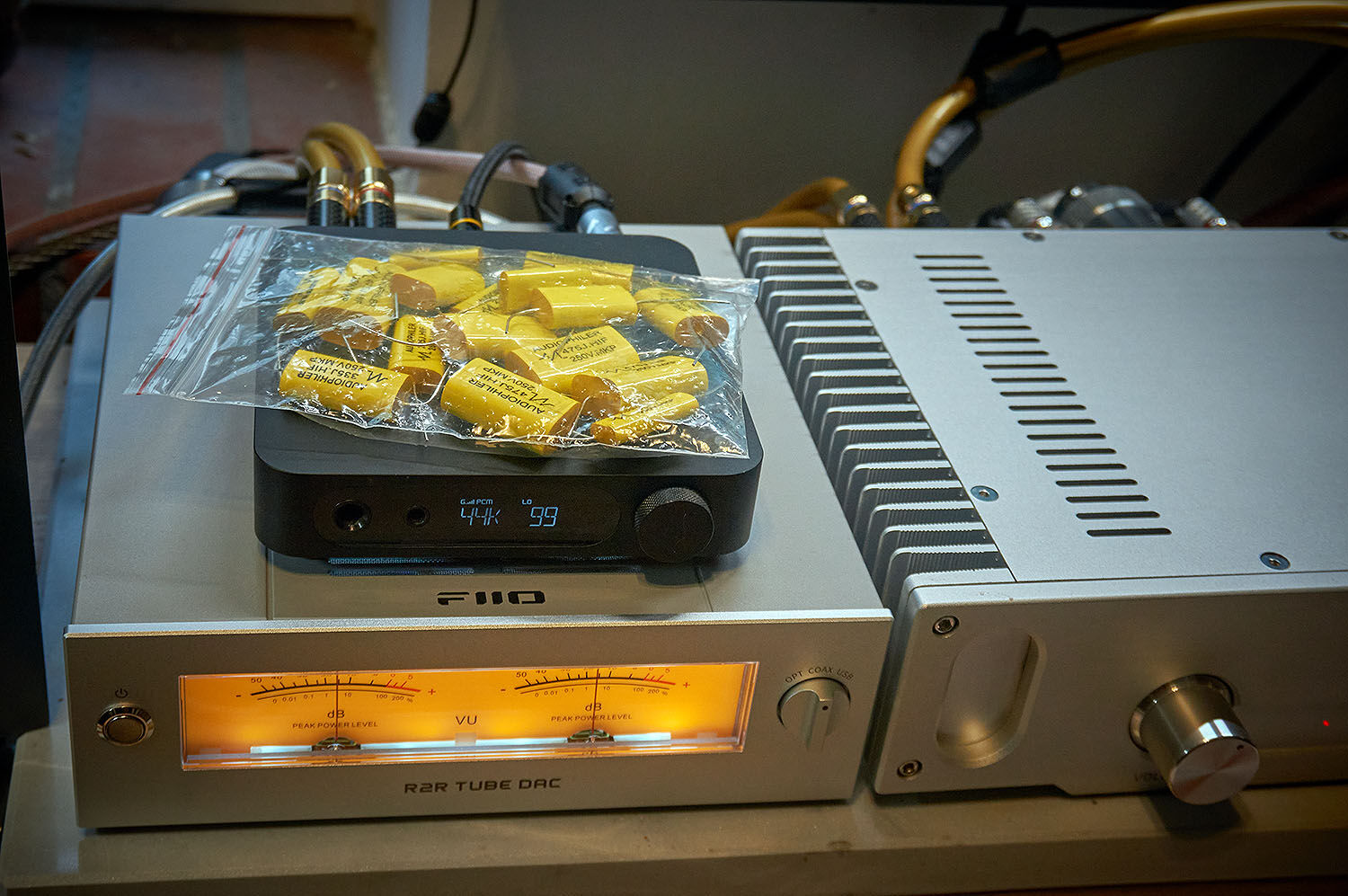 ilyesmi felállás lesz: audiolab dc blocker, aliexpresses r-core 50wos 12v3a linár táp, monosaudio pure silver dc kábel, fiio k13 r2r mint dac/amp, forrás és dac között neutron isolator, izolátortól dac-ig a ddhifi új highend tc19cc ezüst usb kábele, dac és meze 105 aer között az openheart új nightknight 5n pure silver ezüst kábele. és nem, nincs a k13 r2r-nek szüksége ezekhez hogy jól szóljon, de már alapból is annyira jó hogy nagyon mozgatja a fantáziámat hogy még mit lehet kihozni belőle. a dac volt 125k, a lineár táp 30k, monosaudio ezüst dc kábel kb 15k, neutron izolátor 40k, ddhifi kábel megint vagy 16k, openheart ezüts kábel 14k. ha nem látom majd értelmét a dolognak azt se fogom szégyellni, őszinte leszek.