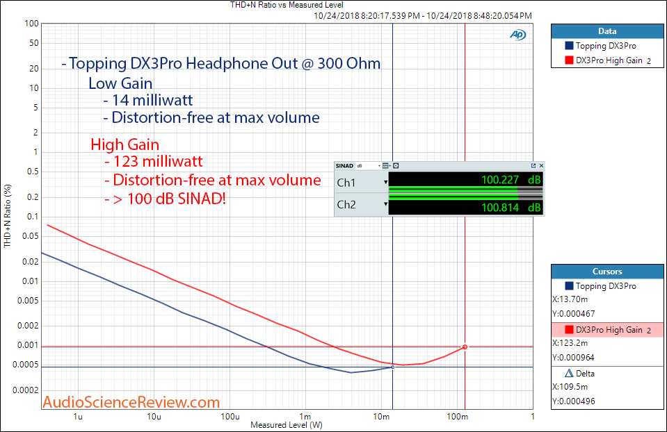 Ééés mi derül ki a mérésből? Hogy 20W felett úgy lő ki a THD, hogy öröm nézni.
