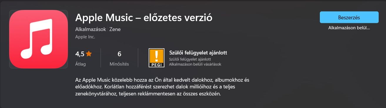 Nálam is tökéletesen működik PC-n az Apple Music. Párhuzamosan hallgatom a Tidallal, Roont elvetettem, Apple Music jobban tetszik, ha csak a hangot nézem. Ráadásul szerdán megjött a TMP USB kábelem