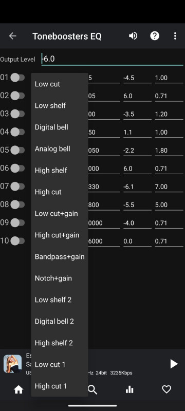Etymotic fülessel. Mondjuk a Neutronplayerben is van előre beállított eq az Etynek, az sokkal jobb hangot ad, de azt eddig nem tudtam rávenni streaming oldalak kezelésére, bár lehet, hogy nem is tud.