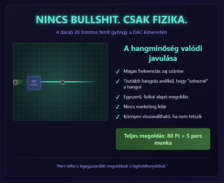 Monitor, router 20-20cm távolságban van a dac-tól.A két változtatást külön-külön sajnos nem füleltem meg.