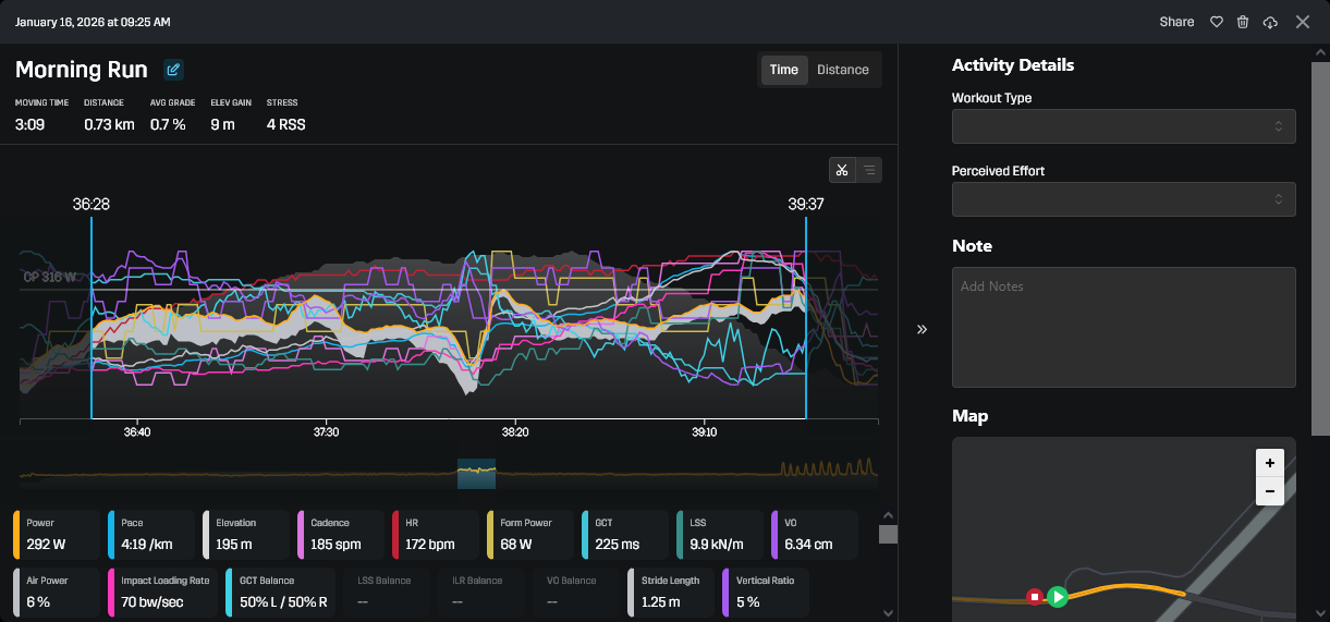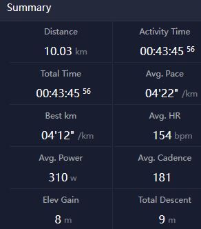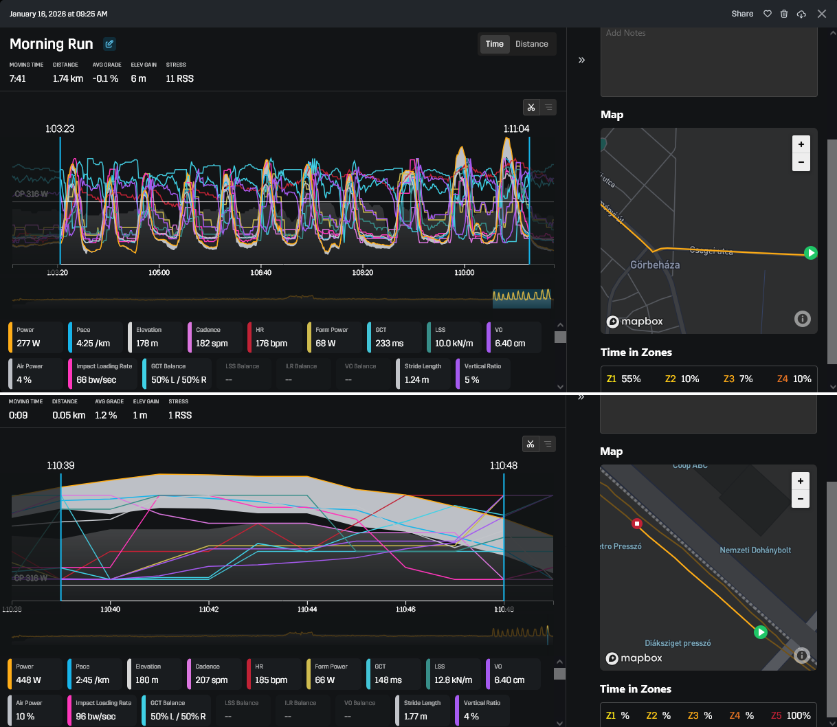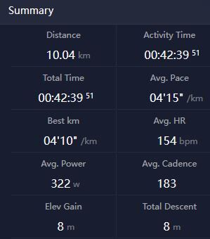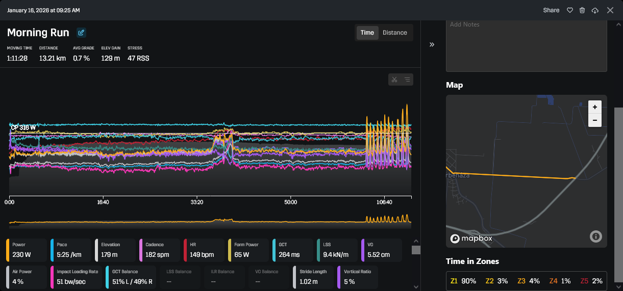 Elég jól adta, 5k oda (már ez is erősebb lett a szokásosnál, 5:10eseket futottam Z2 tetején), 5k laktátküszöbön (4:15-4:25, majdnem 5k PB lett belőle pedig ez elvileg 10k/FM effort), 5k haza (ez is bőven rendben volt)