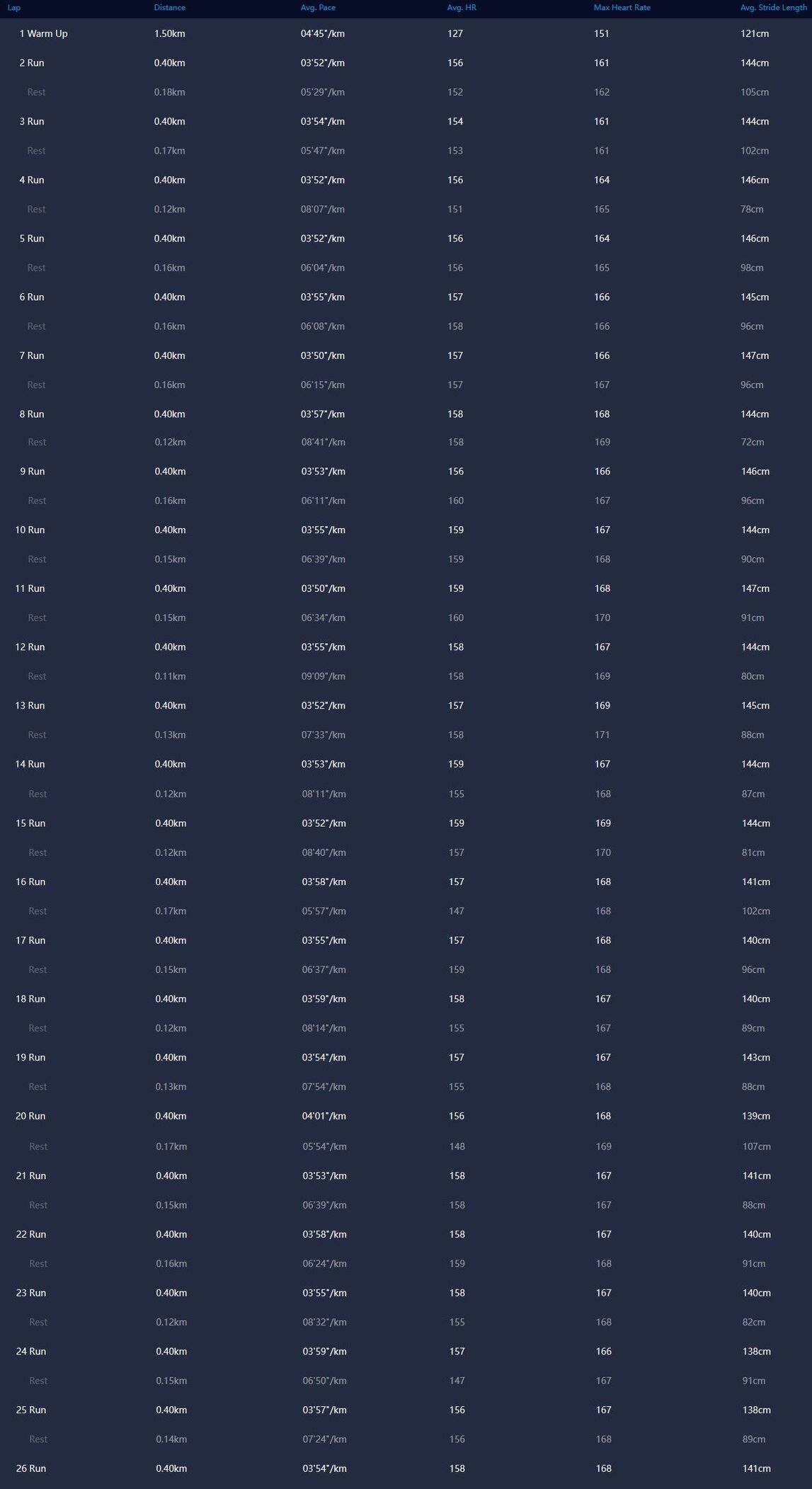 Tegnap könnyű 6km volt, mára meg tompa voltam. Nagy a hőingás is, gondoltam elmegyek lassúra, de az kiütött volna végleg, így lett 17X400m