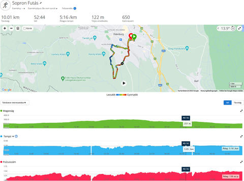 Kieg 1: Az mondjuk sokat segítene, ha nem fél perces sávval lehetne megadni a tervezett pace-t, ahogy azt is már sokadjára figyelem meg, hogy az aktuális tempómat - gondolom a sűrű erdő okozta GPS nehézségek miatt - sokszor kisebb pontatlansággal adja meg.