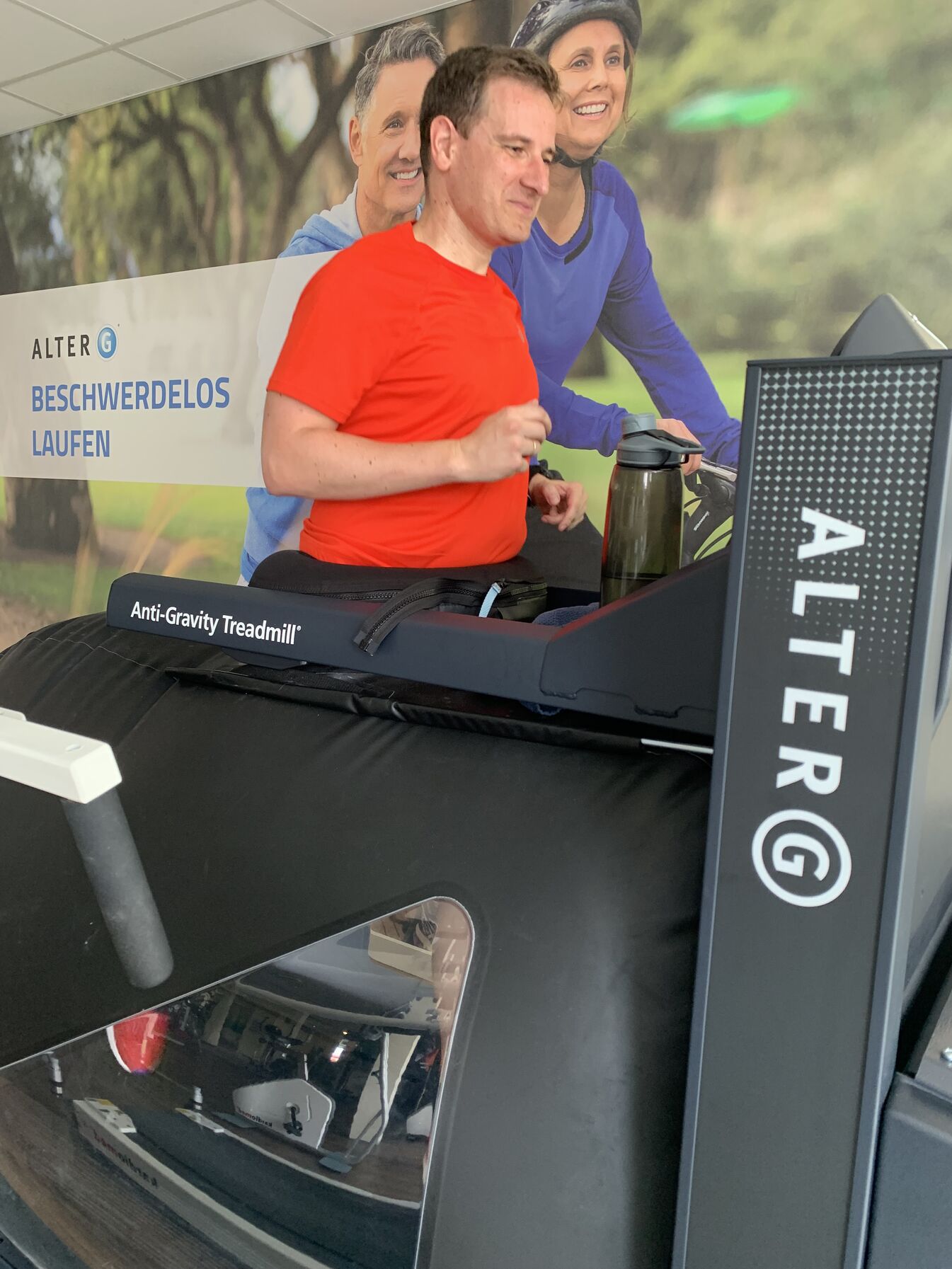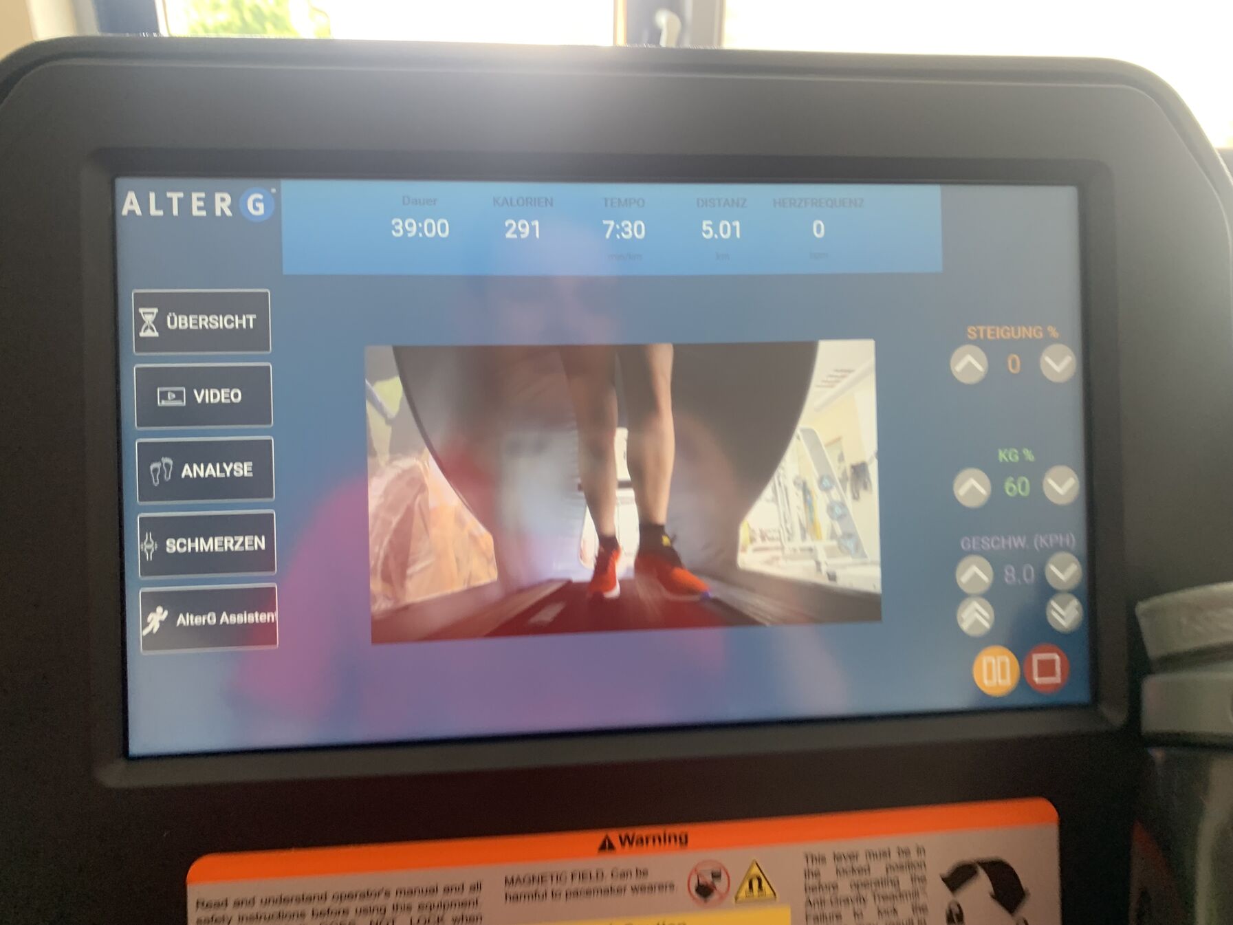 Ma zsákban futottam. Fel kellett venni egy derékban cipzáras nadrágot, belemászni egy zsakba, amit rávarrtak a futópadra, körben behúzni a cipzárat, és egy porszívó kiszívta alólam a levegőt. Konkrétan teljes 0G-t tud csinálni, de amúgy százalékonként lehet állítani, hogy a testsúly mekkora részét vegye le. Valami 30%-on kezdtem, de úgy pattogtam, mint egy túlfújt gumilabda, szóval adni kellett rá, valahol 60% körül van, ahol most futni tudok, fölötte már kezdtem érezni a térdem. Kardio persze fos, március közepe óta nem futottam, a 7 perces tempót 140-es pulzussal tudom tartani, gyorsabbat meg meg sem próbáltam. Ismét kiemelném: mindezt 60%-ra csökkentett testsúllyal. Kicsit szar volt a végén kimászni, igen nehezen emeltem a lábaim. [insert facepalm here ]
