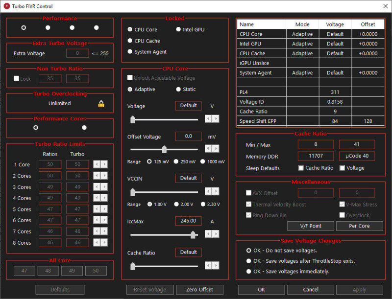 Esetleg XTU-val is kipróbálhatod majd.Meg még valami,ha bármit állítasz TS-ban,az nem látszik egyből a HWiNFO-ban,csak teljes restart után veszi be az adatokat.