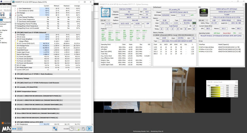 Közbe csináltam Cinebench R23-al egy 10 perces throttling test-et + HWINFO is futott.