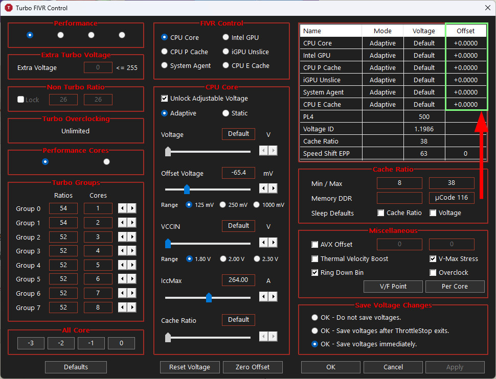 Az XTU egyszerűbb mint a TS,és ott ha látod hogy nem engedi a feszt állítani,akkor tudod belőle hogy máshol kell keresni a hibát először.