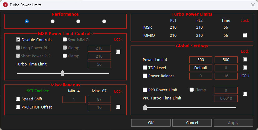 Nincs sok értelme hozzányúlni, ezzel csak a "statikus" power limitet tudod állítani. Ettől függetlenül szabályoz az EC a dinamikus limittel.