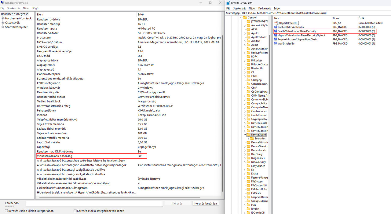 Azt még megkérdezheted esetleg a sráctól, hogy Win-ben a hypervisor-t kikapcsolta, vagy ahhoz nem nyúlt.