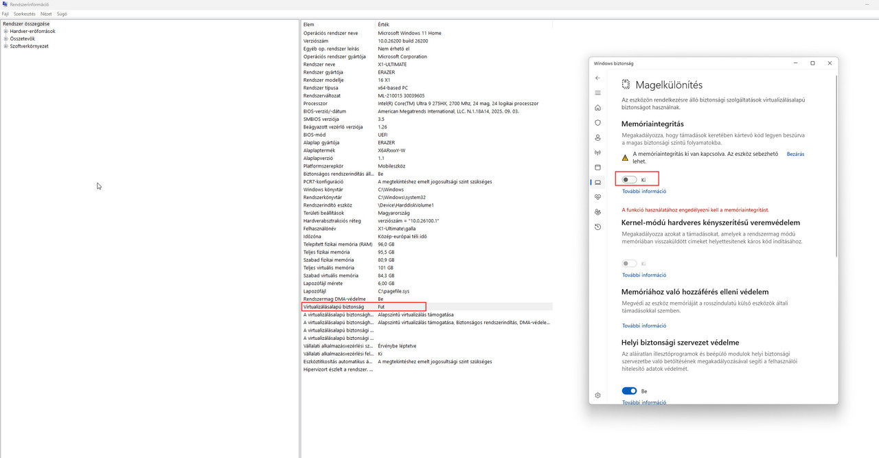 Na jó, de Nálad BIOS szinten engedélyezve van az UV+egyéb beállítások, és a virtualizáció is off.