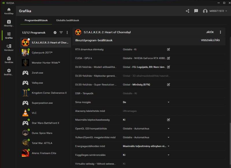 Próbáltam Stalker 2 és Cyberpunk mérést, de kapásból kilépnek. Az NV app-ban kipipáltan van a smooth motion, talán azért. Akkor majd a következő driver segíteni fog ebben.