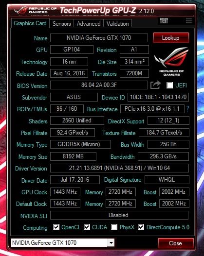 Szerintem itt látszik leginkább 1070 vs 1070 közötti különbség ha visszább olvasol akkor gondolom feltünik majd hogy elég sok változat van,de gondolom neked ez nem ujdonság és szerintem it ez okozza a különbségeket,mint ahogy most kaptam is erre választ.
