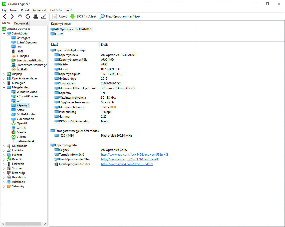 Ráadásul ha minden igaz, akkor a géped 120 Hz-es AUO B173HAN01.1 panelt használ...nyugtass meg, hogy ha DX12-es játékot vagy programot (pl Time Spy) futtatsz akkor még a mozgásnál fekete szellemképet is látni az új, modern driverekkel ([link]).