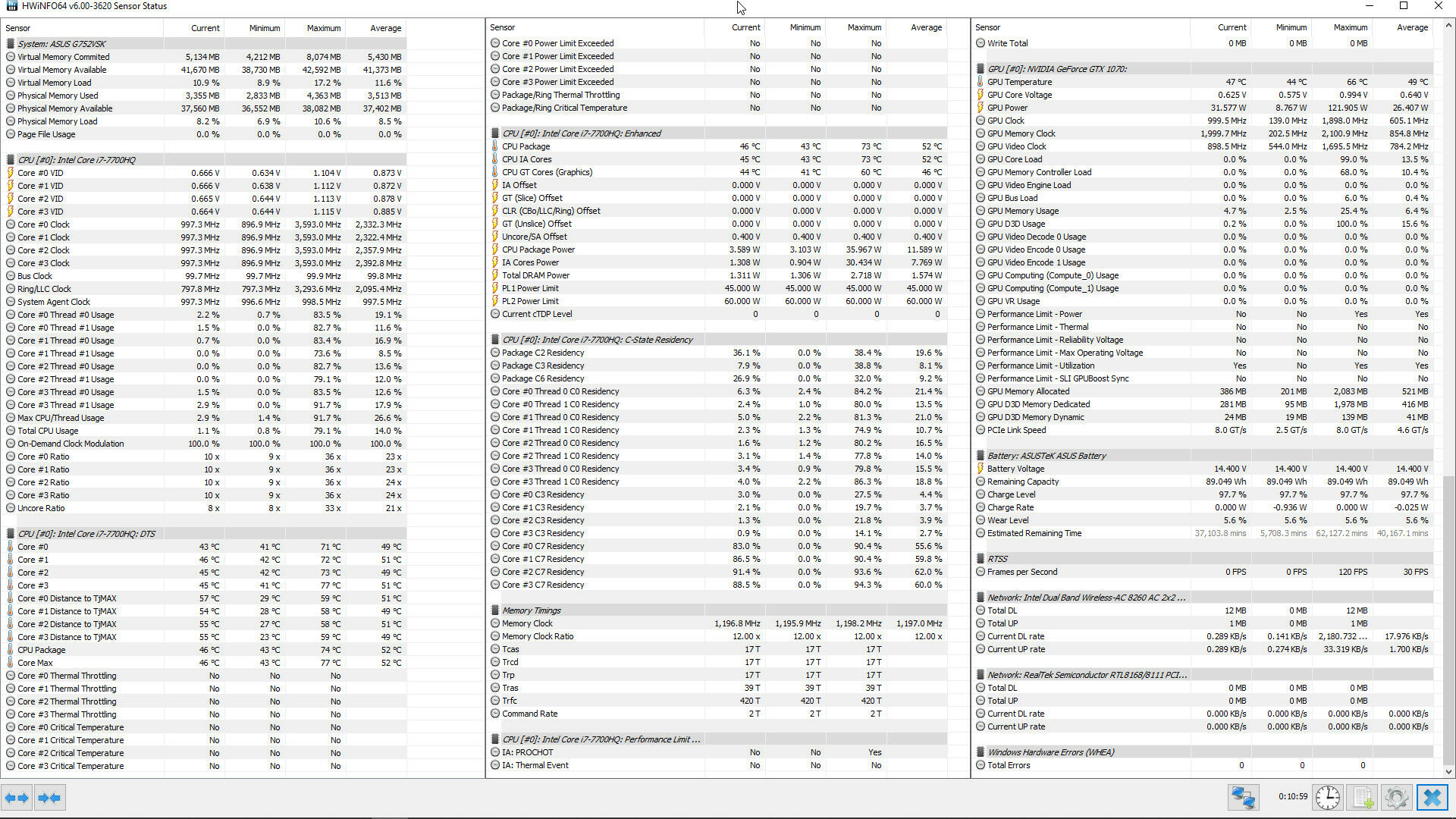 AIDA64 minden bepipálva, kivéve local disk, negyed óra. i5-8250U (3.4 GHz-en ketyegett végig, emelt TDP mellett) + MX150. Szóval nem gamer gép, de na.