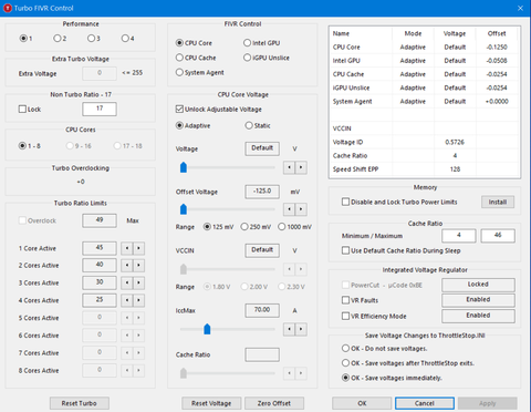 Az undervoltot így állítottam be, ha Cache-nél lejjebb veszem, jön a fagyás / kékhalál, de a Core teljesen stabil. Mehetek vele tovább -150-200mV-ig, vagy hagyjam ennyin? A Turbo órajeleket is lejjebb vettem kicsit.