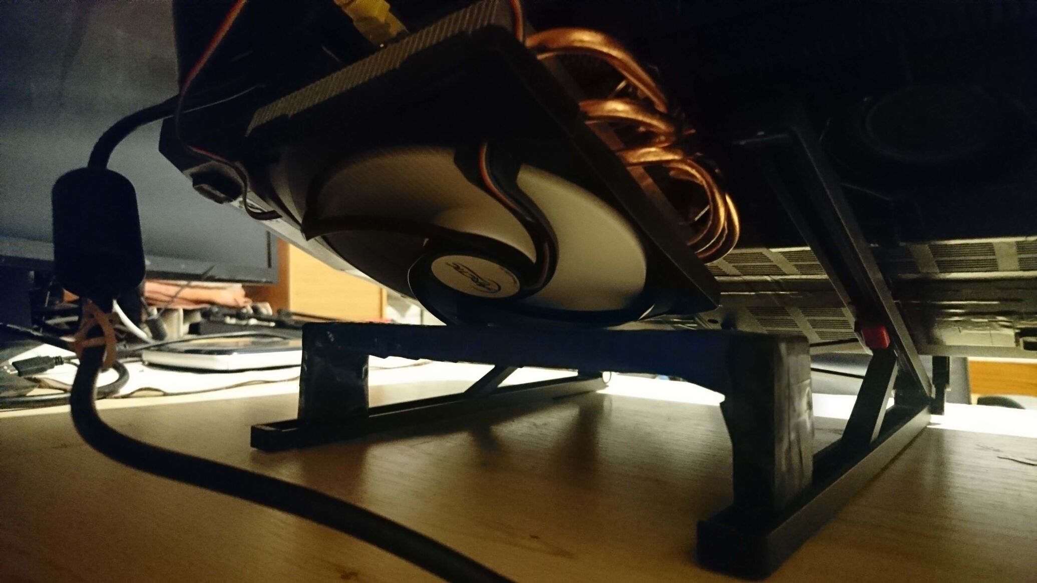 Főleg, hogy a te géped alja konkrétan hiányzik, mert oda egy desktop GPU hűtőventillátor vagy mi a szösz van felszerelve, ugye?????