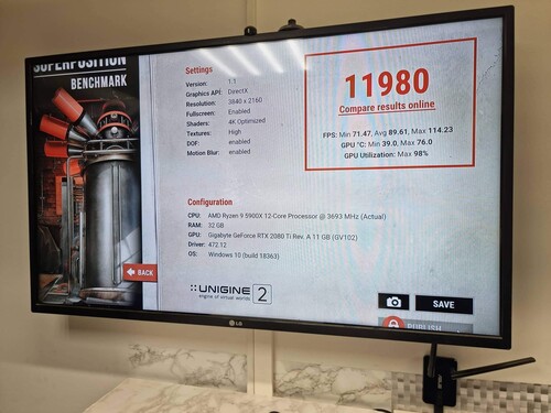 Engem nyugalommal tölt el, hogy az asztali 2080Ti-től nem sokkal marad el az én 2080S-m (és kis OC-val még tovább fokozható)