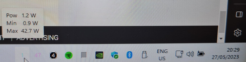 (megy a venti, de kb 2e lehet a fordulatszama. Razernel nem tudod merni - max kezzel allitani ha nagyon akarod)Valojaban olyan 2-5w korul van a proci amikor netezek - meg kell par dolgot felraknom. Spotify, Steam, stb. De eddig jo az osszkep. Kicsit sok a processz, 200-hoz kozelit - majd elkezdem kezzel kigyepalni a felesleges szolgaltatasokat. Az csucs eddig 95 (egy debloat-olt w11-ben) volt amikor mar minden fel volt instalalava es minden futott (steam, wd cucok, Throttlestop, Onenote, Razr Synapse, Spotify, stb).