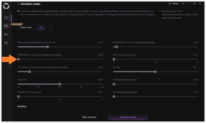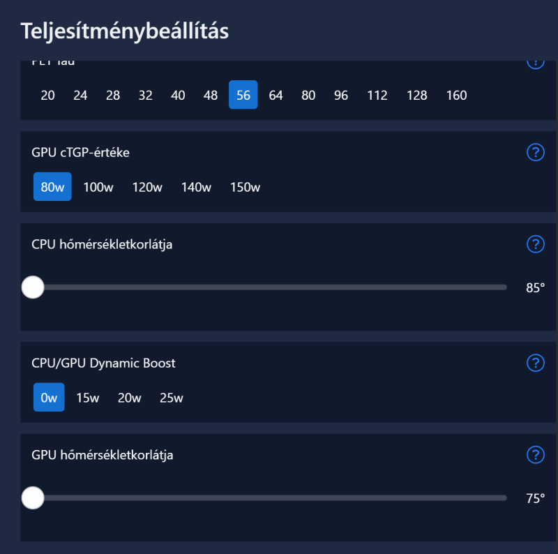A tiszta CPU terhelés résznél viszont csak 50W a legalja amit enged nála.Erre lennék kíváncsi mindenkinél így van-e,mert logikátlan ha ezt gyárilag így lőtték be.Nálam ennek az értéknek 30W a legalja 14900HX procinál.Egyébként nincs sok jelentősége,ha van GPU terhelés is akkor már nem fogja 50W-ig engedni a procit,de ha csak kizárólag CPU terhelés van akkor igen. -