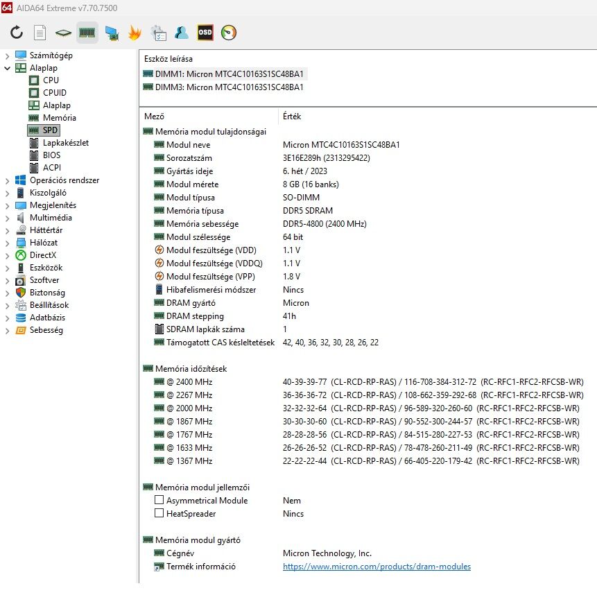[kép] [kép]A proci miatt ez a max elvileg : Memory Types Up to DDR5 4800 MT/s [link]