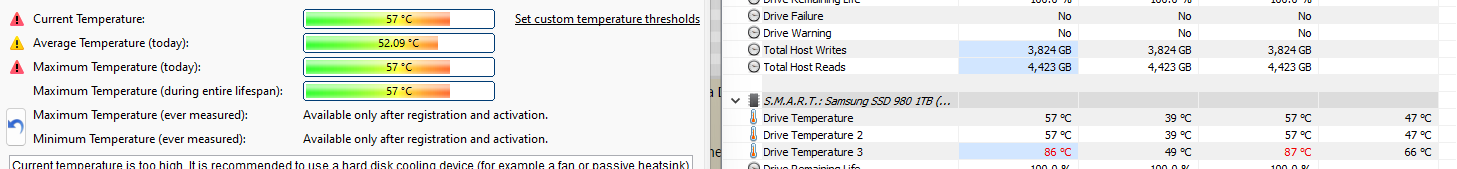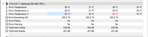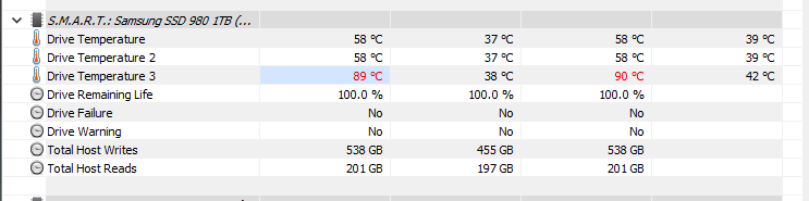 Samsung Magicianban egyébként ha benyitom a smart értékeket 8 temperature szenzort sorol fel, 2 mellett mutat is értéket, mindegyiknél normál amit mutat. Nem tudom, hogy a hwinfo ezt az értéket honnan veszi, de ez a 33 fok eltérés, ami fél perc alatt lecsökken 0 eltérésre, nekem kicsit hihetetlennek tűnik. Kicsit keresgélve, találtam redditen hwinfo oldalán hasonló posztokat, ahol ugyan ez volt a helyzet, ott is egyébként samsung ssd-vel, hogy a hőfokok 55-60 fok körül voltak, ez a 3. érték meg 90-110 között.