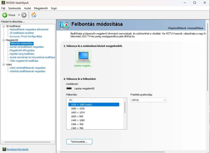 60 és 144Hz választási lehetőség. Ilyet eddig még sosem láttam élőben, marad a 144.