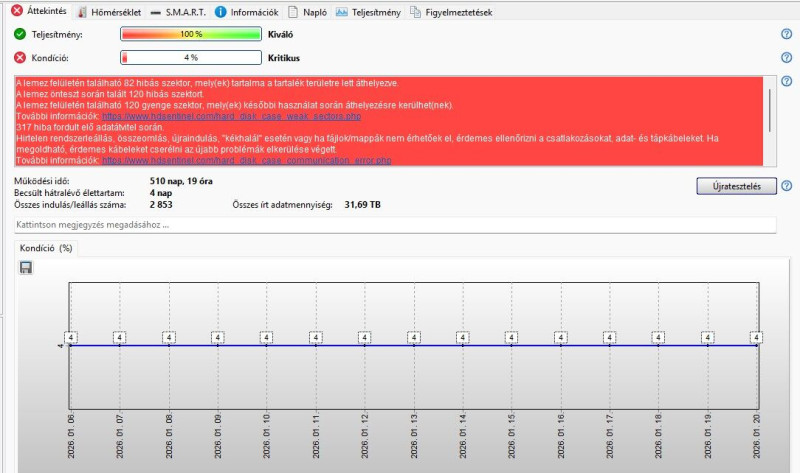 Tegnap ezt a lemezemet megpróbáltam migrálni, nem ment. 200GB-nál feladta. Ezt már nem volt hajlandó elvégezni semmi sem. Ezért csak átmásoltam egy hibátlan hasonló lemezre. Ha megdöglik cserélem arra. /2TB notebook HDD/Szerintetek mik az esélyeim?