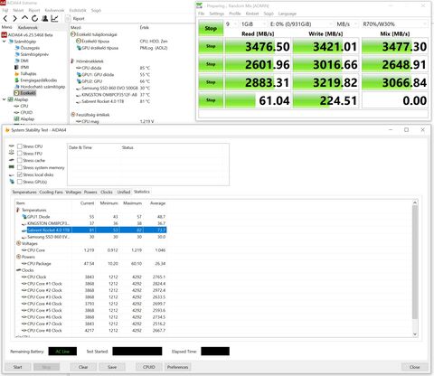 A régebbin 48TB írás mentén jár 96%-nál a másik 31TB írás mentén jár 97%-nál és Win11 alatt (ahol nem százas még minden gyárilag, pontosabban az OS hibája miatt a rendszer SSD-n a write ) ezt tudják:Melegszenek? Igen. Mennyire? Nagyon... masszív terhelés mentén(párhuzamosan 4 CDM futott PEAK_MIX módban) mértem már 81 fokot is AIDA-val, de ez megoldja, ezzel még az 50-et se éri el soha, tök mind1 mit kap, terhelés nélkül meg 36-38 fokosak:
