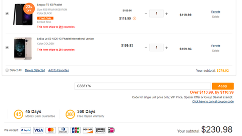 GBBF176kupon, ezzel már csak 230.98$ az együttes összeg, a kérdés továbbra is a hongkongi tömegnövelő termék
