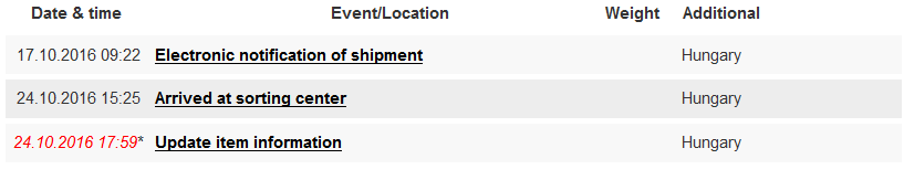 2016-10-13 10:17The item has been processed in the country of destination