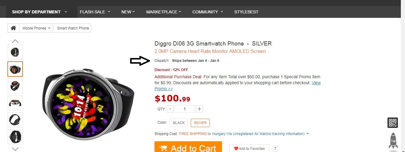 A termék oldalán a Dispatch: Ships between Jan 4 - Jan 6 jelzi a várható feladási időt, igaz ez jelenleg arra vonatkozik ha most rendelnéd meg.