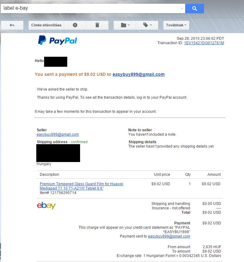 -ellenőrizzem a címet (PayPal-nál megadott címre jön...)PayPal megoldotta a dolgot 100% Refund lett..